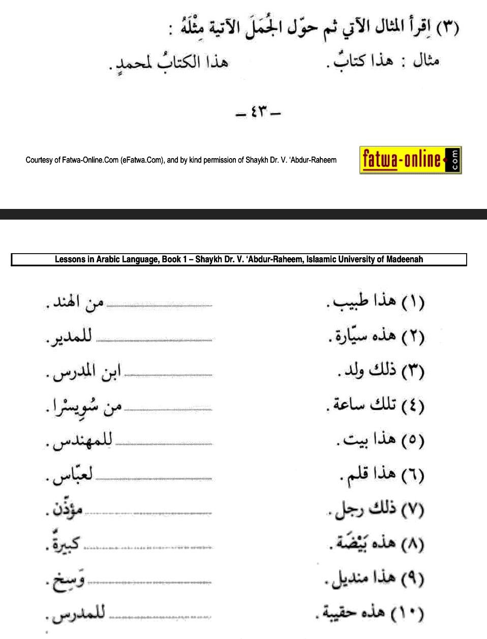 முதல் பாடத்தில் “ هذا بيتٌஇது வீடு” என்று பார்த்தோம். இப்போதுهذا البيتُ இந்த வீடு” என்று பார்க்கப்போகிறோம்.
