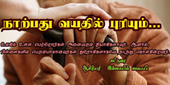 உங்கள் பெற்றோரின் பெருமையைப் புரிந்து கொள்ள நாற்பது வயது வரை காத்திருக்கப் போகின்றீர்களா? உங்கள் பிள்ளைகளால் காயப்பட்ட பின்னர்தான் உங்கள் பெற்றோரின் கஷ்டம் உங்களுக்குப் புரியுமா?