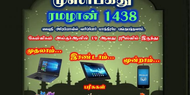 முஸாபகது ரமலான் போட்டியின் விடைகள் பதிவிடவும்.
