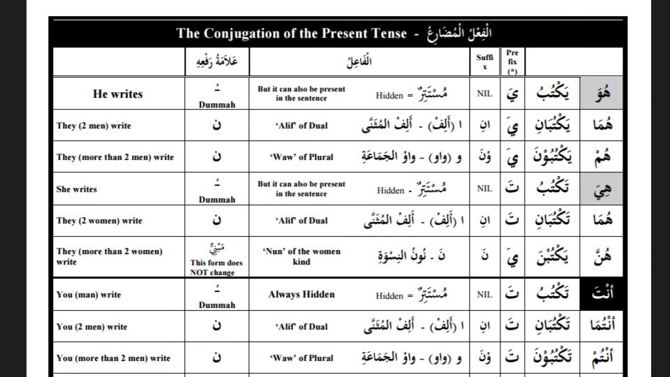 Arabic Book 2 Basic مضارع – هو، هما، هم :