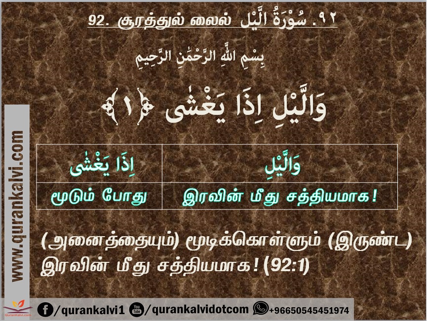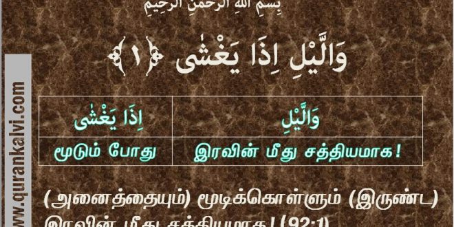 தினம் ஒரு குர்ஆன் வசனம் (வார்த்தைக்கு வார்த்தை) (92 : 1) April 3, 2018 Uncategorized Leave a comment 3,359 Views Share Facebook Twitter