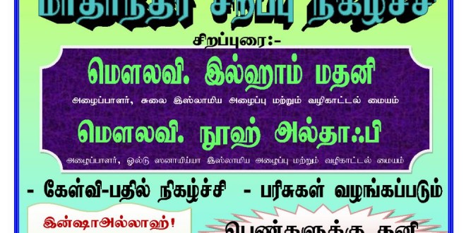 சிறப்புரை :1) மௌலவி : இல்ஹாம் மதனி