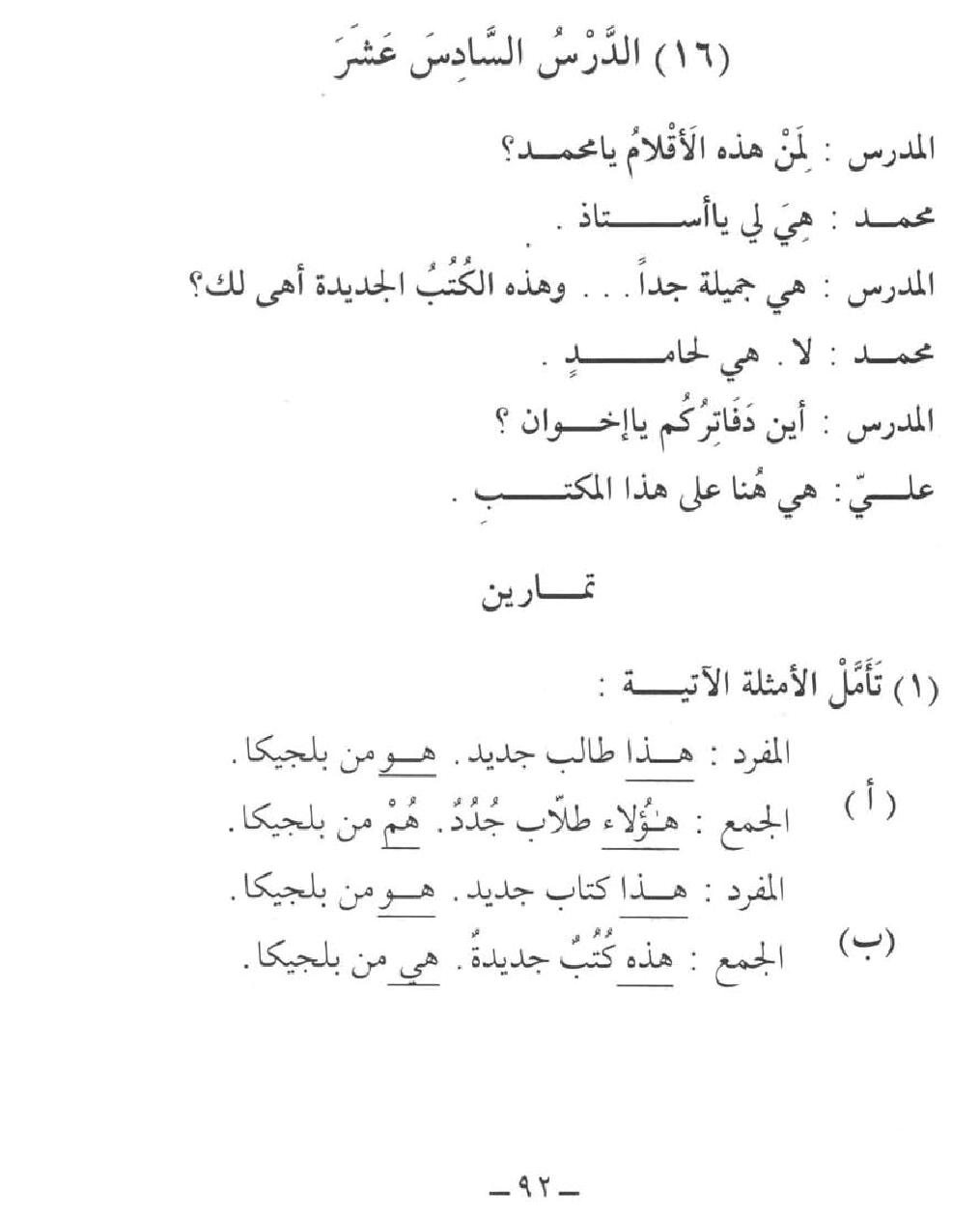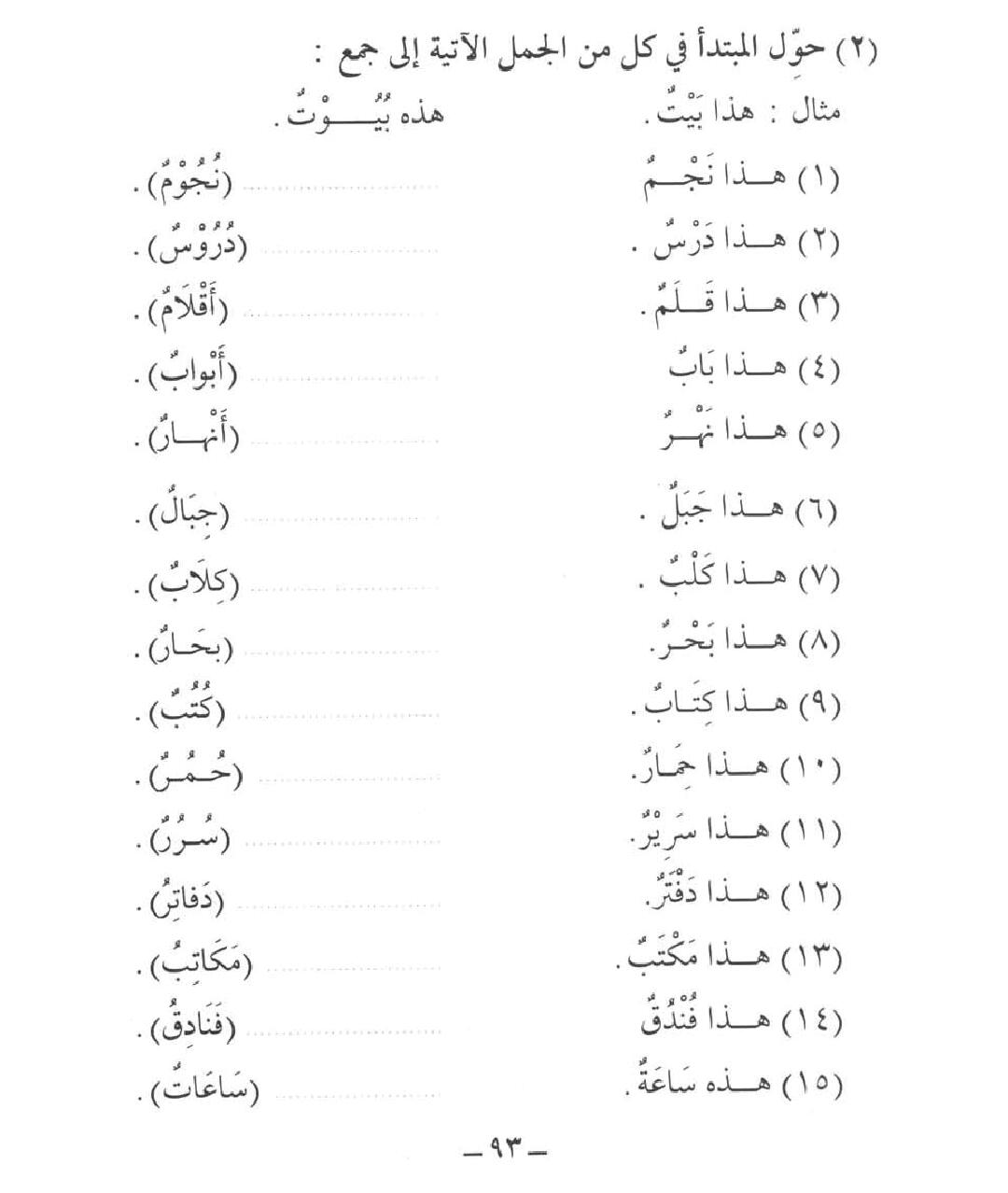 16வது பாடம் மற்றும் இலக்கணம் Full Lesson : பாடம் : كل جمع مؤنث : Pg 93 Ex-2 : Pg 94 & 95 Ex-3 & 4 : H.W Answer: