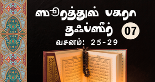 Read More »ஸூரத்துல் பகரா தஃப்ஸீர் | வசனம் 25 – 29 | பாகம் – 07