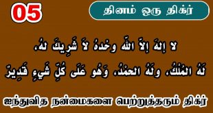 தினம் ஒரு திக்ர் 05 : ஐந்துவித நன்மைகளை பெற்றுத்தரும் திக்ர் மௌலவி பக்ரூதீன் இம்தாதி