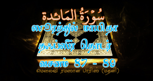 Read More »ஸூரத்துல் மாயிதா தஃப்ஸீர் தொடர் வசனம் 87-89[[Tafseer Surah Maeda Verse 87-89]