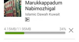 அஸ்ஸலாமு அலைக்கும், மௌலவி அப்பாஸ் அலி MISC அவர்கள் எழுதிய “சூனியம்” என்ற புத்தகம் இப்போது Android வடிவில் Google Play யில் உள்ளது, கீழேயுள்ள லிங்கை பயன்படுத்தி டவுன்லோட் செய்துகொள்ளலாம். https://play.google.com/store/apps/details?id=com.marukkappadum.nabimozhigal
