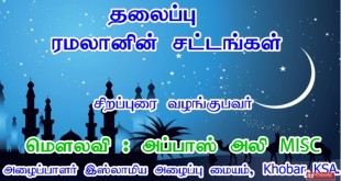 Read More »ரமலானின் சட்டங்கள் – மௌலவி அப்பாஸ் அலி MISC