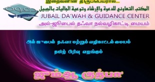 அஸ்ஸலாமு அலைக்கும் அல்-கோபர் இஸ்லாமிய அழைப்பு மையத்தின் சார்பாக வாராந்திர மார்க்க சொற்பொழிவு நிகழ்ச்சி இன்ஷா அல்லாஹ் 12 : 05: 2016 – வியாழக்கிழமை (சவூதி நேரம்) இரவு 8:30 மணி முதல் 9:30 மணி வரை நடைபெறும். தலைப்பு : முதுமையிலும் கல்வியை தேடிய அறிஞர்கள் +++++++++++++++++++++++++++++++++++++++++++ வழங்குபவர் : மெளலவி முஜாஹித் இப்னு ரஸீன் இடம் : அல்கோபர் தாஃவா சென்டர், யூனிவைடு சூப்பர் மார்க்கட் அமைந்துள்ள கட்டிடத்தின் மேல் மாடி.. பெண்களுக்கு தனி இடவசதி & இரவு உணவு எற்பாடு செய்யப்பட்டுள்ளது. நேரடி …