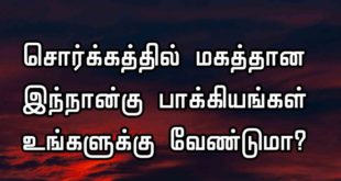 Read More »சொர்க்கத்தில் மகத்தான இந்நான்கு பாக்கியங்கள் உங்களுக்கு வேண்டுமா?