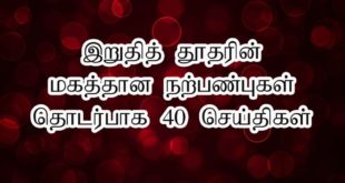 Read More »இறுதித் தூதரின் மகத்தான நற்பண்புகள் தொடர்பாக 40 செய்திகள்