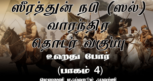 Read More »ஸீரத்துன் நபி ஸல் வாரந்திர தொடர் வகுப்பு உஹது போர் (பாகம் 4) [ Seerah of Prophet Muhammad SAW]