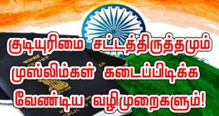 Read More »குடியுரிமை சட்டத்திருத்தமும் முஸ்லிம்கள் கடைப்பிடிக்க வேண்டிய வழிமுறைகள்