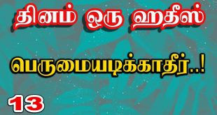 தினம் ஒரு ஹதீஸ் 13: பெருமையடிக்காதீர்..! மௌலவி பக்ரூதீன் இம்தாதி عن عبد الله بن مسعود رضي الله عنه عَنْ النَّبِيِّ صَلَّى اللَّهُ عَلَيْهِ وَسَلَّمَ قَالَ: لا يَدْخُلُ الْجَنَّةَ مَنْ كَانَ فِي قَلْبِهِ مِثْقَالُ ذَرَّةٍ مِنْ كِبْرٍ அறிவிப்பாளர்:இப்னு மஸ்ஊத் (ரலி) நூல்:முஸ்லிம் 149