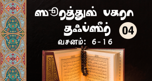 Read More »ஸூரத்துல் பகரா தஃப்ஸீர் |வசனம் 6 – 16 | பாகம் – 04
