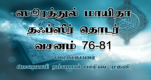 Read More »ஸூரத்துல் மாயிதா தஃப்ஸீர் தொடர் வசனம் 76-81[[Tafseer Surah Maeda Verse 76-81]
