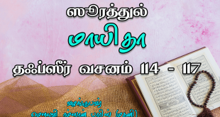 Read More »ஸூரத்துல் மாயிதா தஃப்ஸீர் தொடர் வசனம் 67, 68 & 69 [Surah Maeda Tafseer Verse 67,68 & 69]