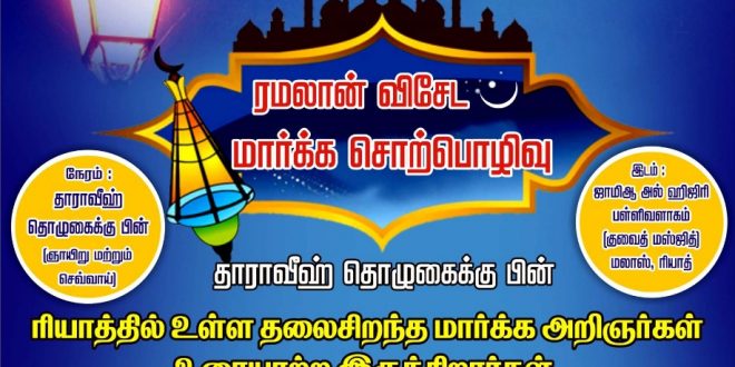 வாராந்திர பயான் நிகழ்ச்சி புதுமண தம்பதிகளுக்கு சில வழிகாட்டல் (இஸ்லாமிய ‍‌‍குடும்பவியல்-பாகம்-12), உரை : S.யாஸிர் ஃபிர்தௌஸி நாள் : …